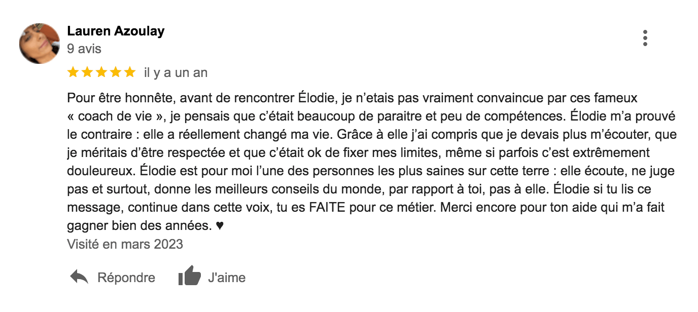 Nos cinq séances de coachings sont directement intégrées à l'accompagnement, il te suffit de cliquer sur le lien pour accéder à mon calendrier, et les réserver.